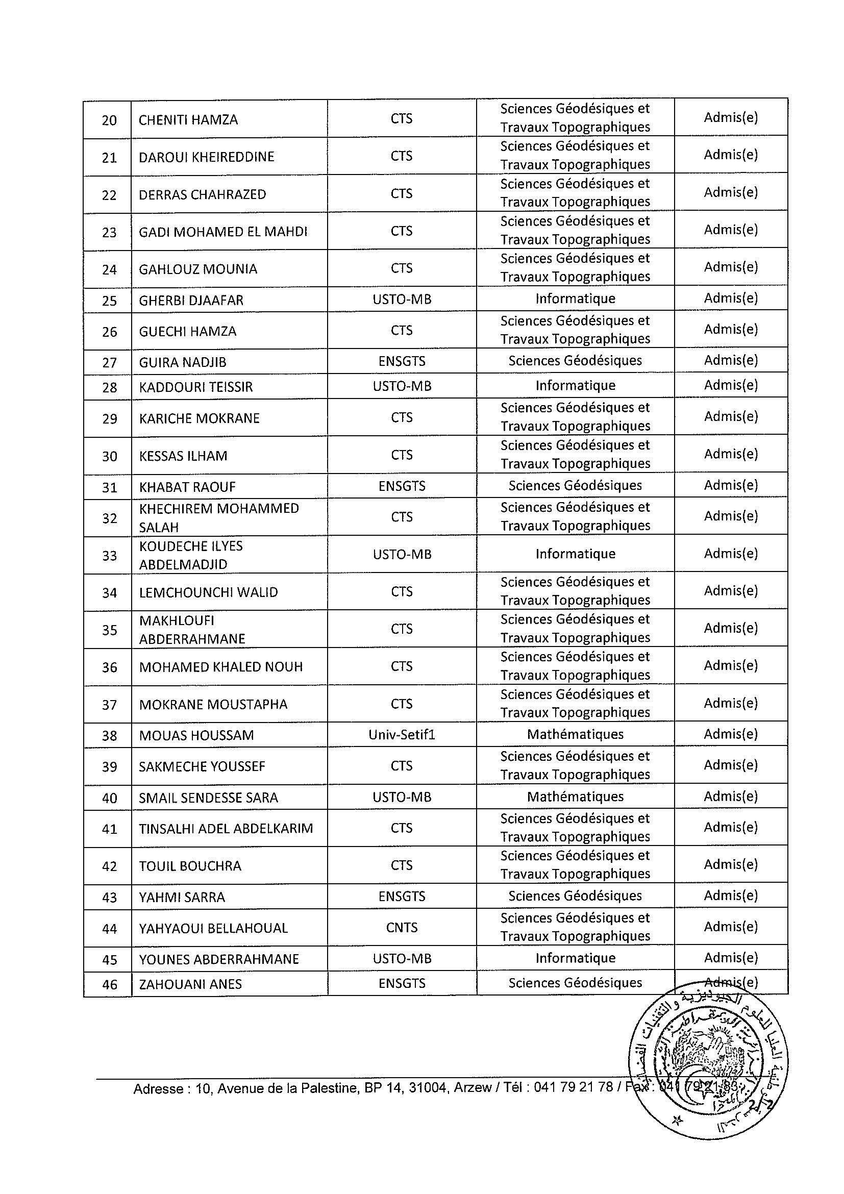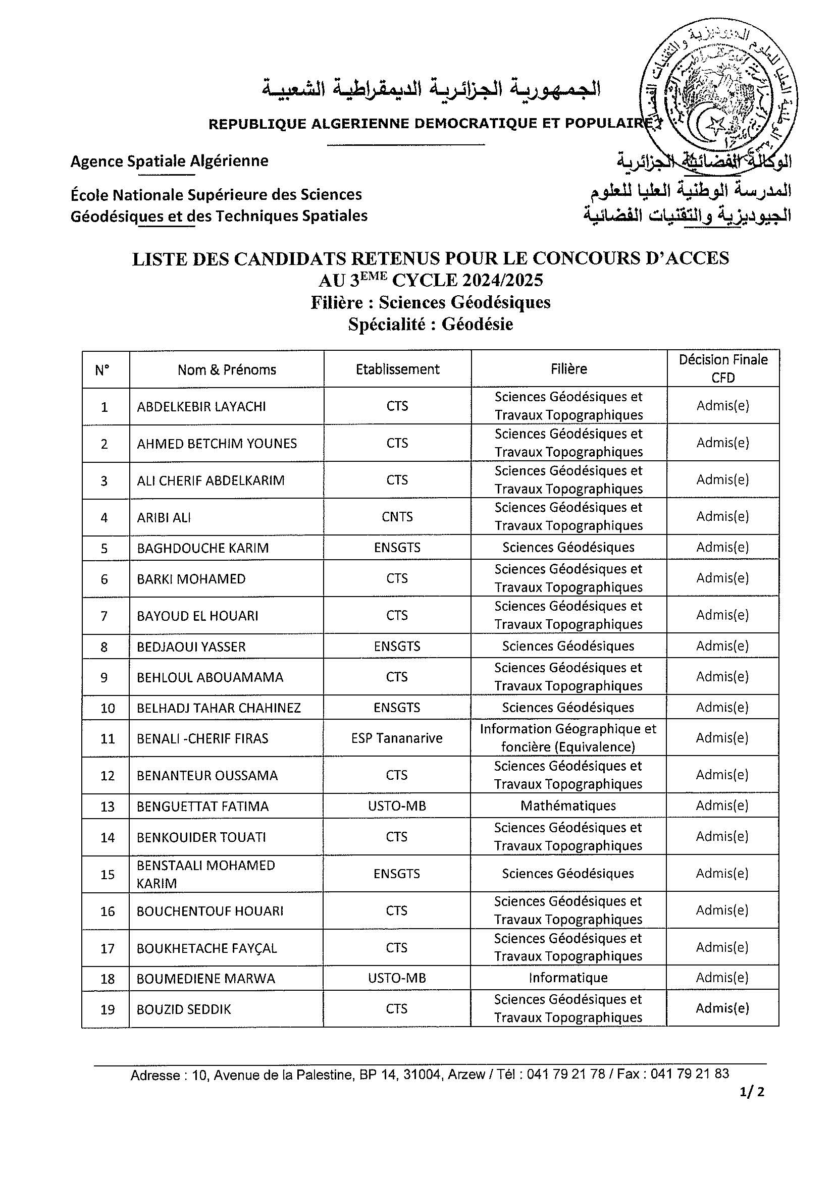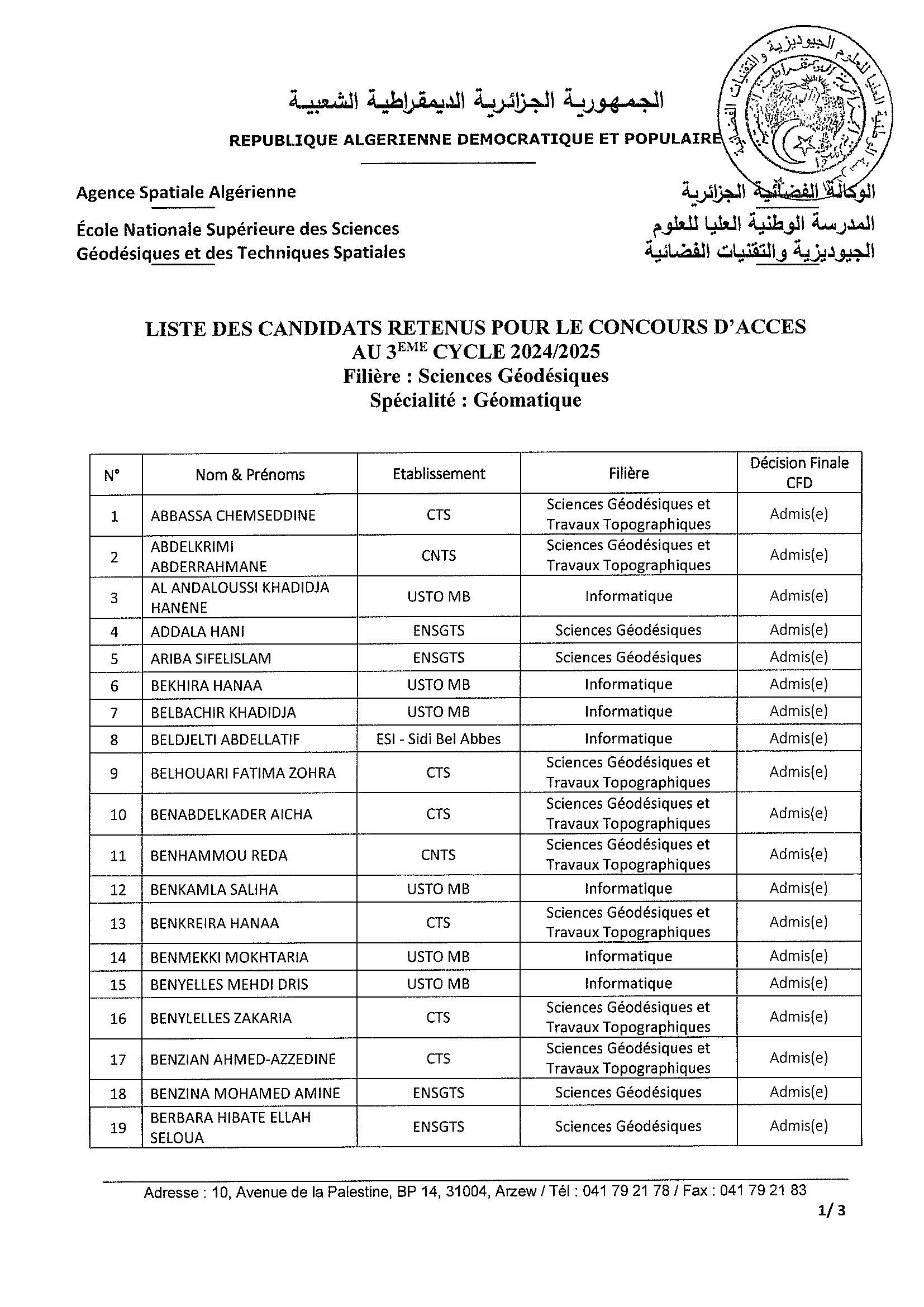 Listes des candidats retenus pour le concours d’accès au 3ème cycle 2024/2025 à l’ENSGTS par webmaster | Fév 18, 2025 | Actualités | 0 commentaires