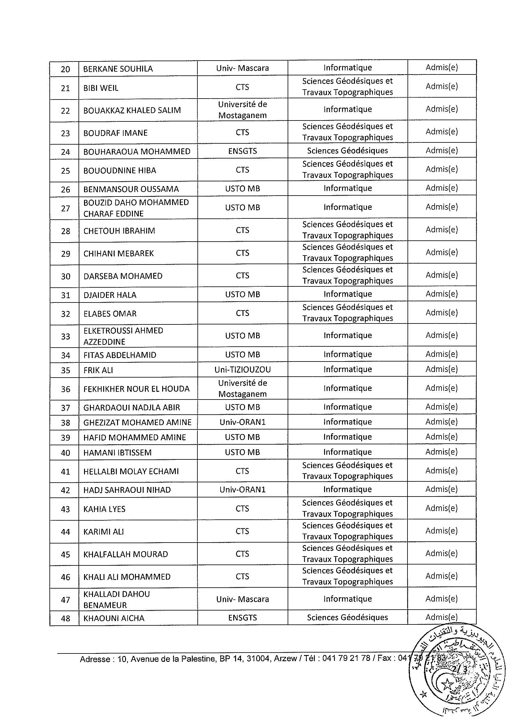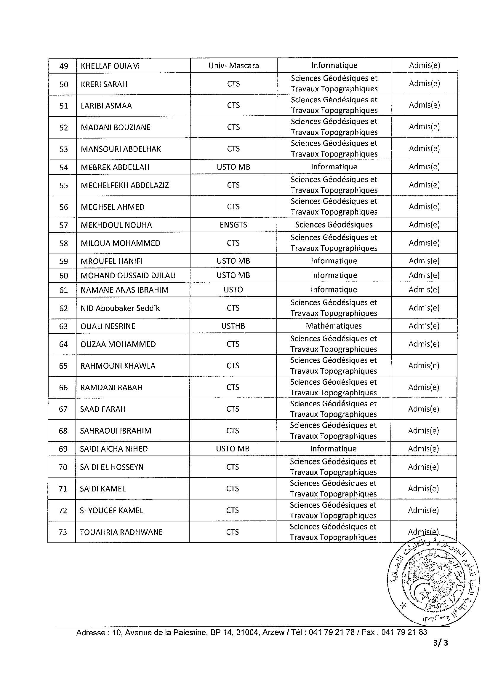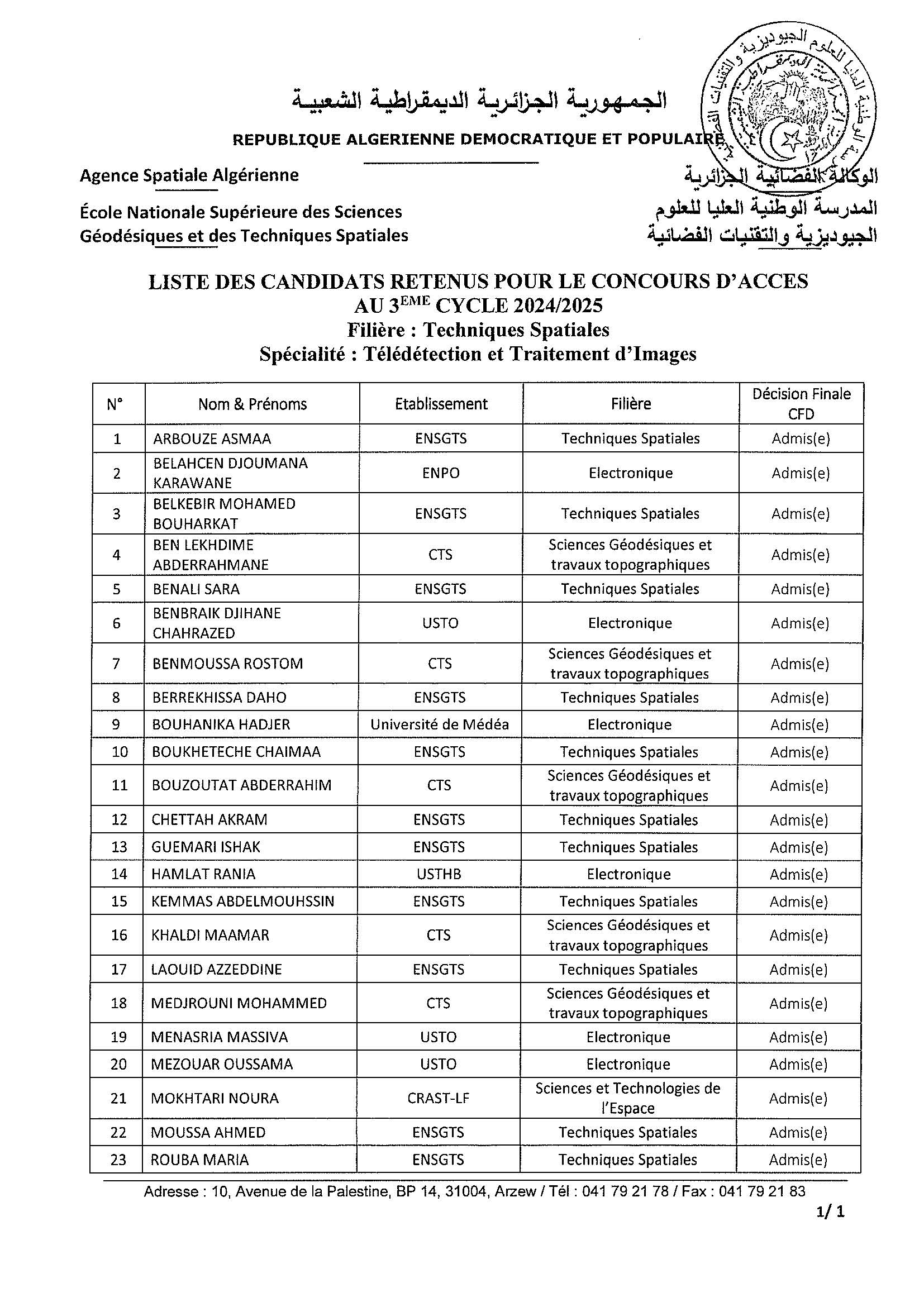 Listes des candidats retenus pour le concours d’accès au 3ème cycle 2024/2025 à l’ENSGTS par webmaster | Fév 18, 2025 | Actualités | 0 commentaires
