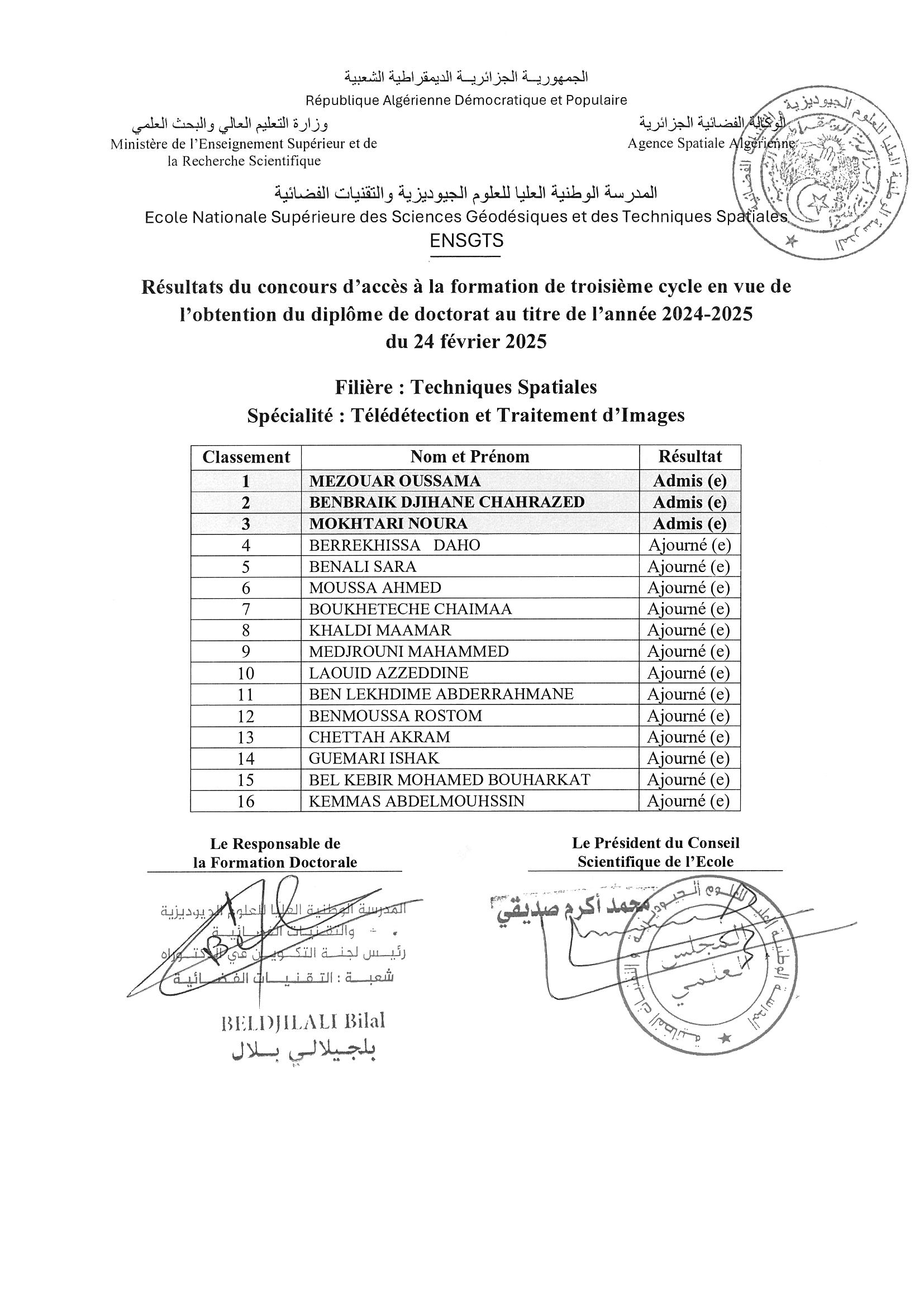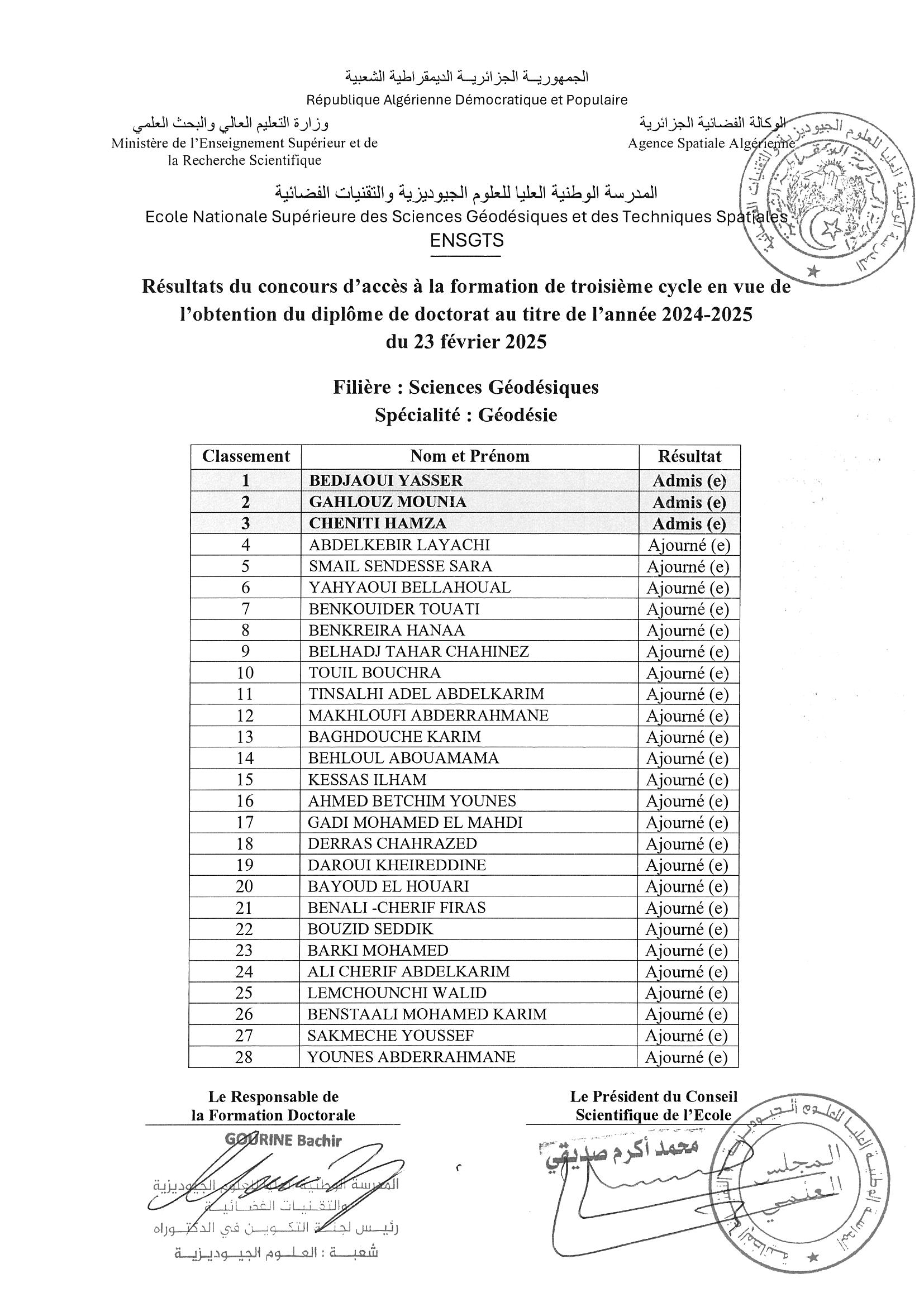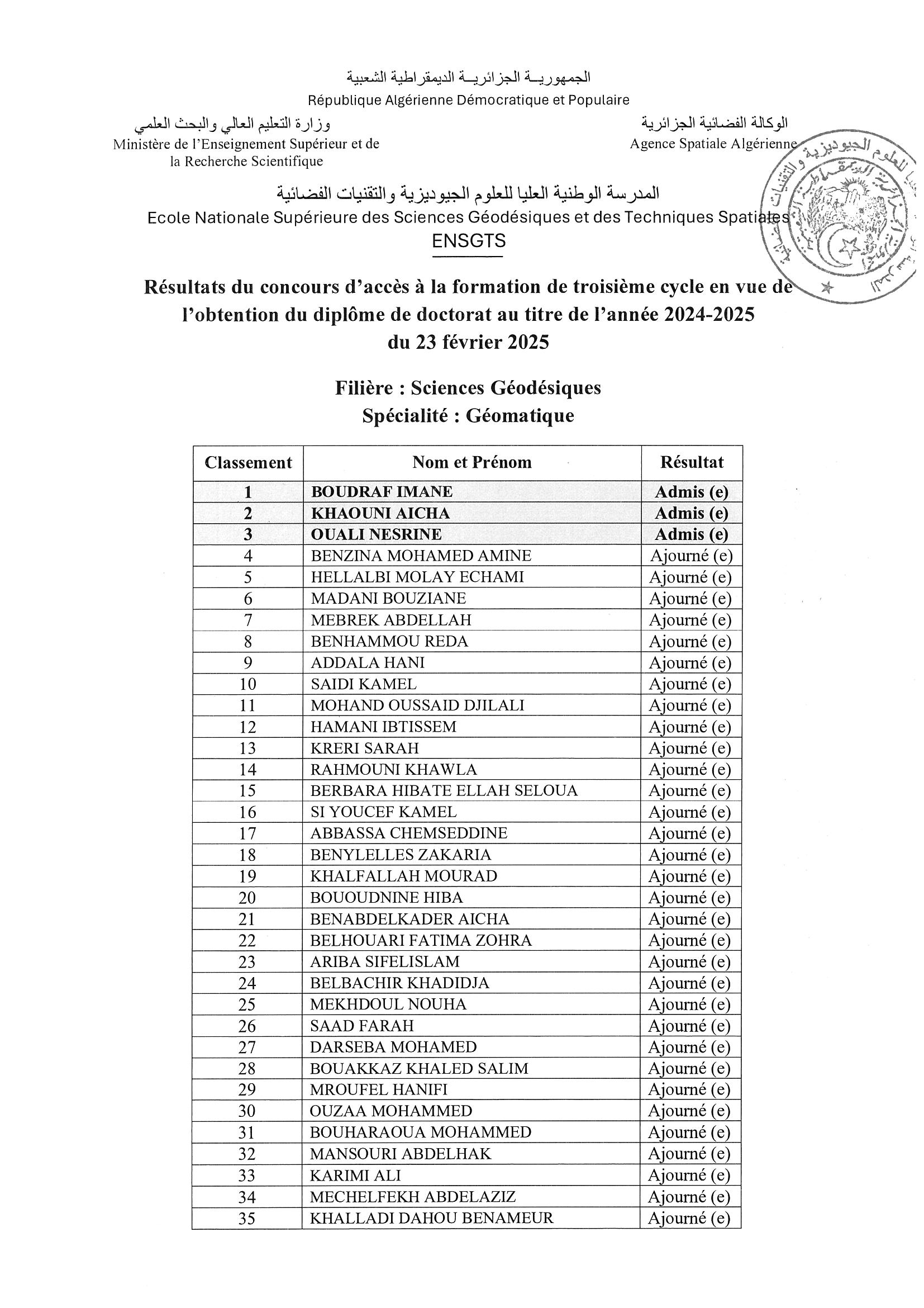 Résultats du concours d’accès à la formation de troisième cycle en vue de l’obtention du diplôme de doctorat au titre de l’année 2024-2025 du 23 Février 2025 par webmaster | Fév 27, 2025 | Actualités | 0 commentaires