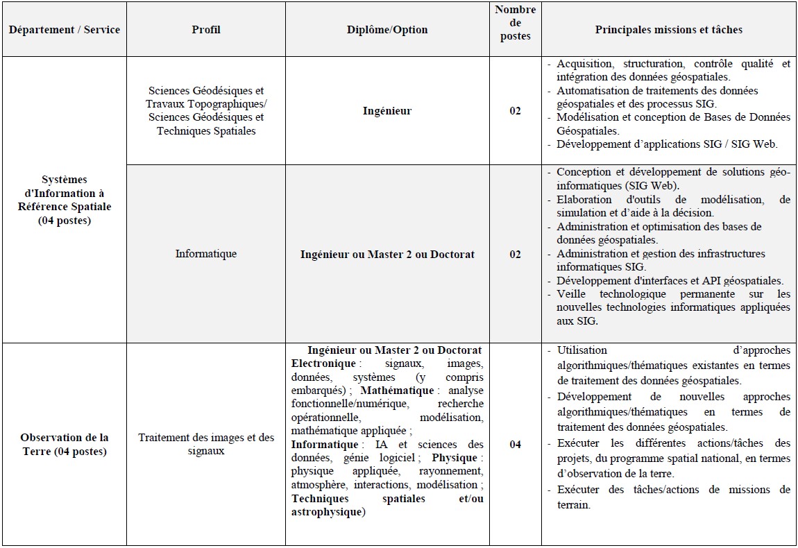 Le Centre des Techniques Spatiales, entité opérationnelle de l’Agence Spatiale Algérienne située à Arzew (W.Oran), lance une opération de recrutement de 15 employés :