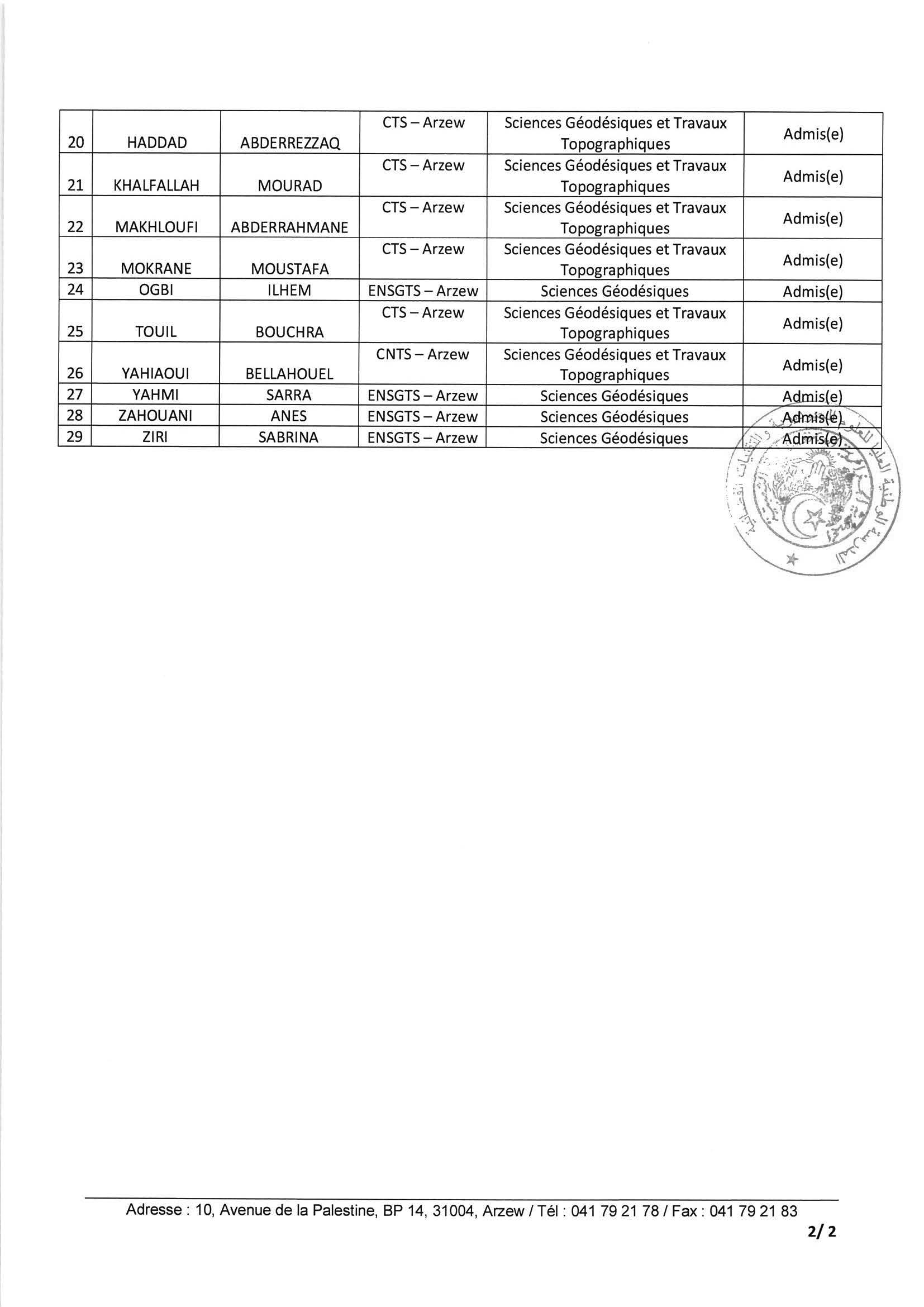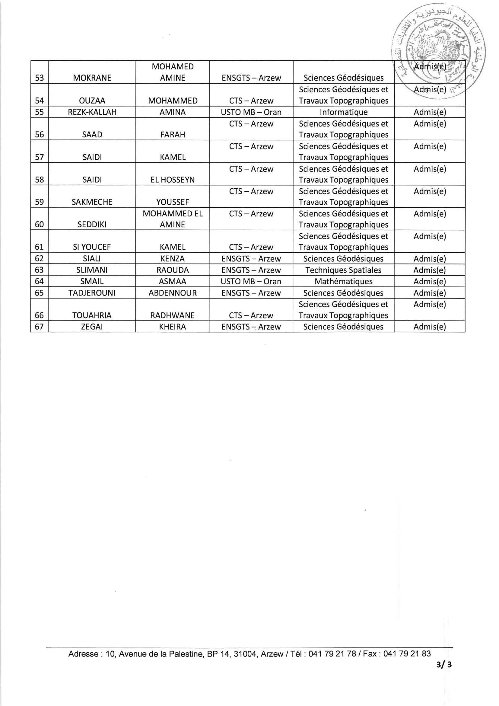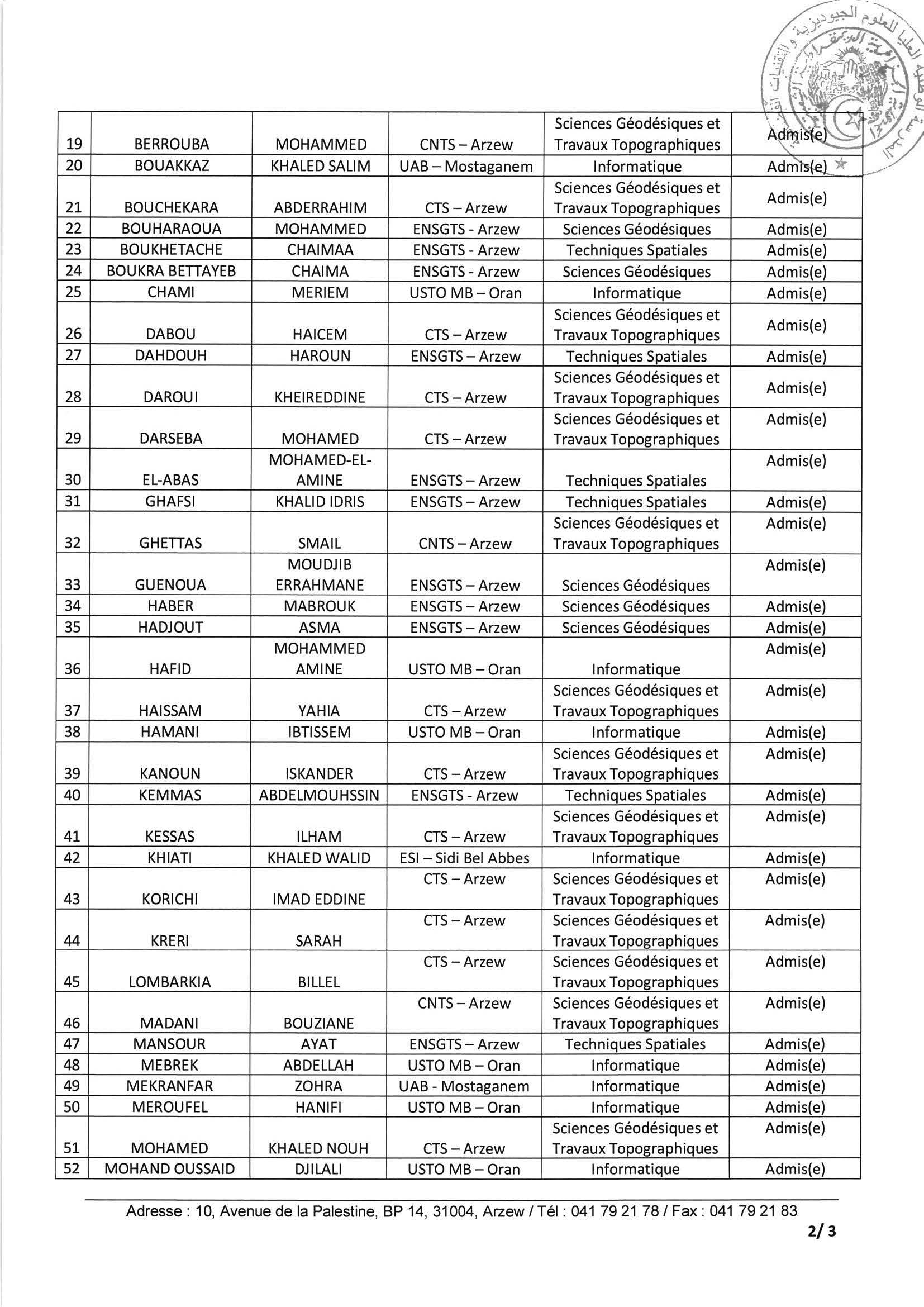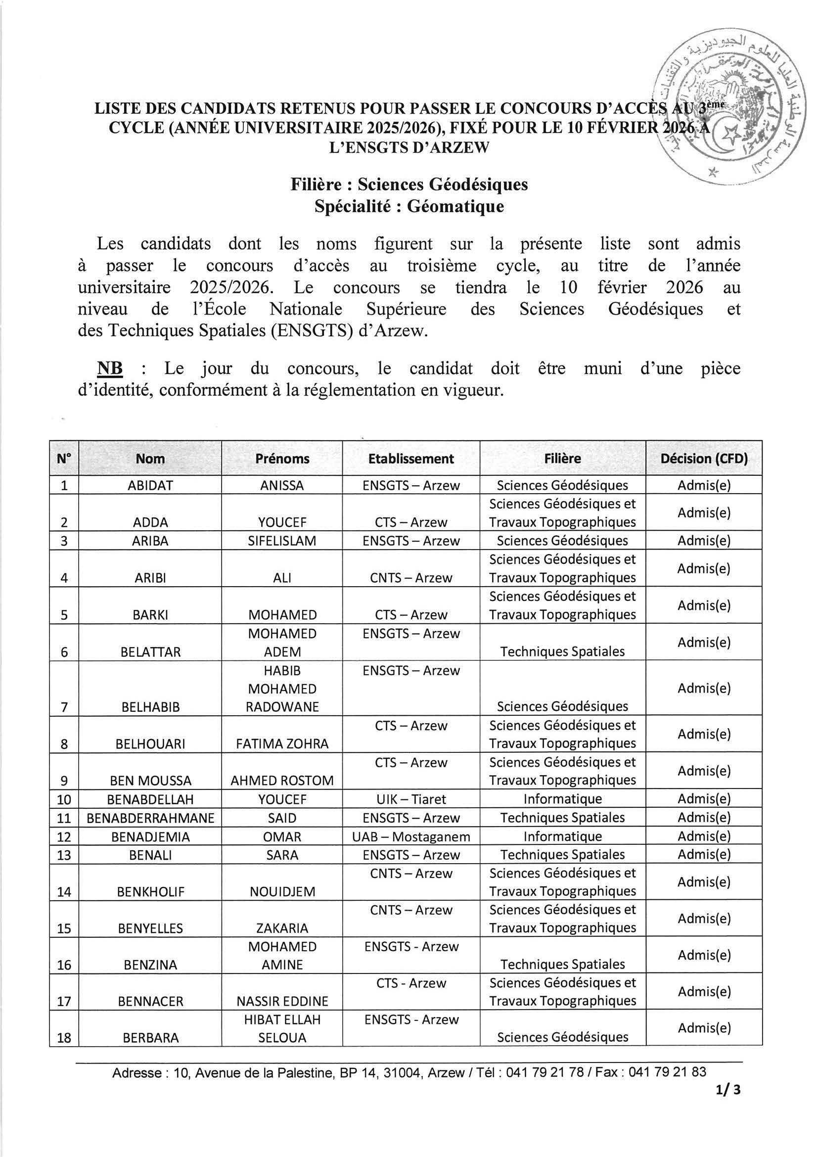 LISTE DES CANDIDATS RETENUS POUR PASSER LE CONCOURS D’ACCÈS AU 3ème CYCLE (ANNÉE UNIVERSITAIRE 2025/2026), FIXÉ POUR LE 10 FÉVRIER 2026 À L’ENSGTS D’ARZEW par webmaster | Jan 28, 2026 | Actualités | 0 commentaires