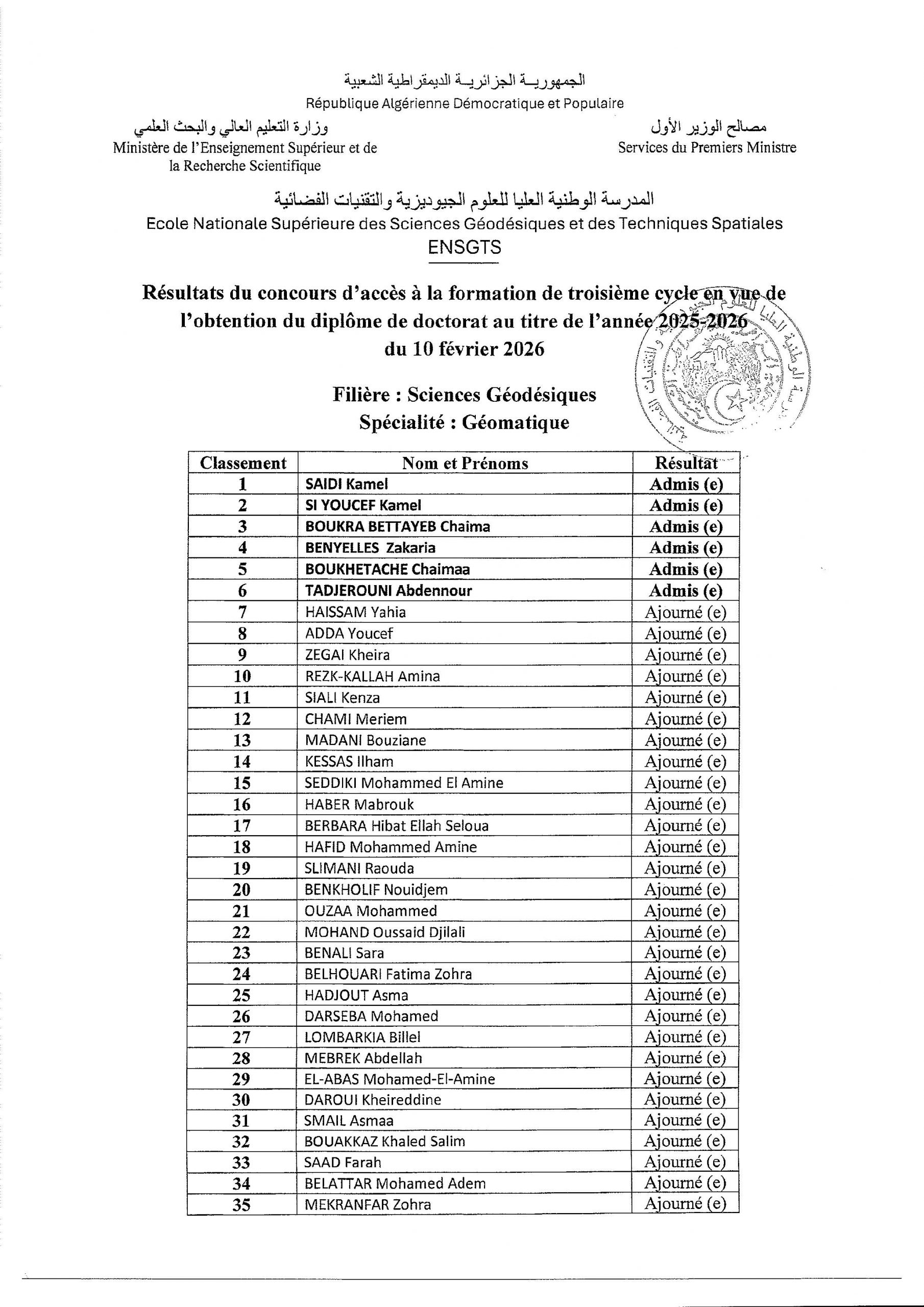 Résultats du concours d’accès à la formation de troisième cycle en vue de l’obtention du diplôme de doctorat au titre de l’année 2025-2026 du 10 février 2026 par webmaster | Fév 12, 2026 | Actualités, Non classifié(e) | 0 commentaires