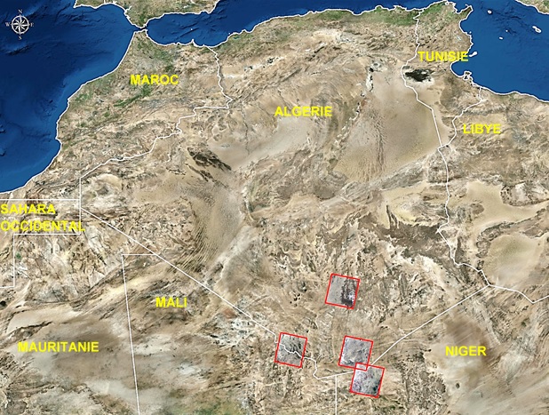 Figure 4 : Identification des zones de reproduction du criquet pèlerin dans les régions de Tin Zaouatin (W. Adrar)