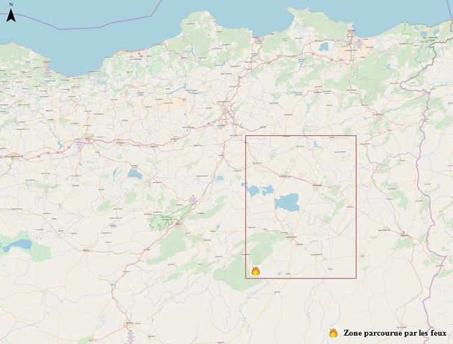 Figure 2: Spatiocarte de la zone parcourue par le feu au niveau de la région de Bouhmama