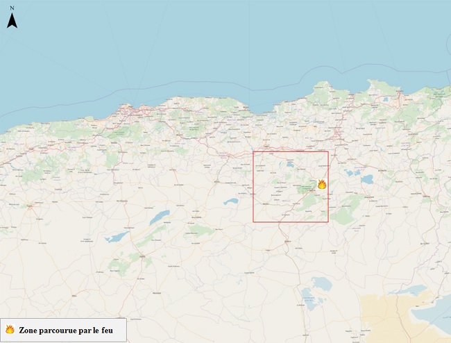 Figure 3: Zoom sur la zone parcourue par le feu au niveau de la forêt domaniale de Bouarif