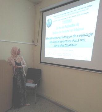 Une thèse de Doctorat a été soutenue par Mme SALEM Houria, Attachée de Recherche au Centre de Développement des Satellites (CDS) de l’Agence Spatiale Algérienne (ASAL), le 19 Juin 2018 à l’Université des Sciences et de la Technologie d’Oran – Mohamed Boudiaf (USTO-MB), Faculté de Génie Mécanique.