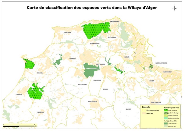 - Carte de classification des espaces verts dans la wilaya d’Alger se référant à l’article 3 de la loi 07-06;
