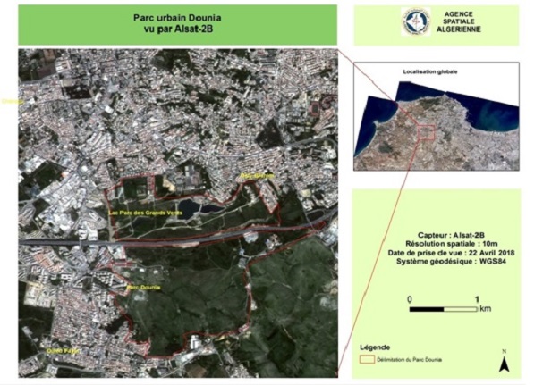 - La délimitation du parc Dounia, basée sur l’image satellitaire Alsat-2B du 22 avril 2018;