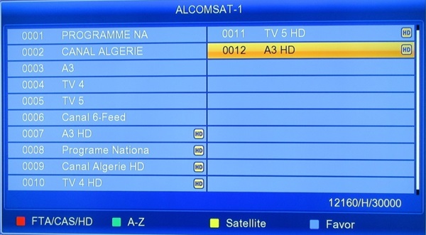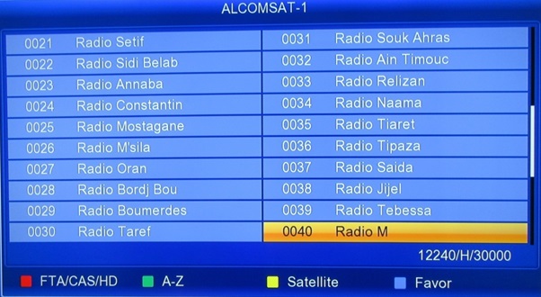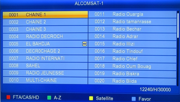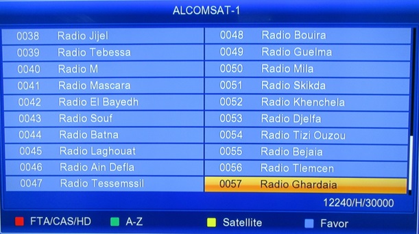 Des chaines de télévision publiques : Canal Algérie, Algérie 3, Algérie 4 (TV Tamazight), Algérie 5 (TV Coran), Programme National et Canal 6 feed / TDA Test card;