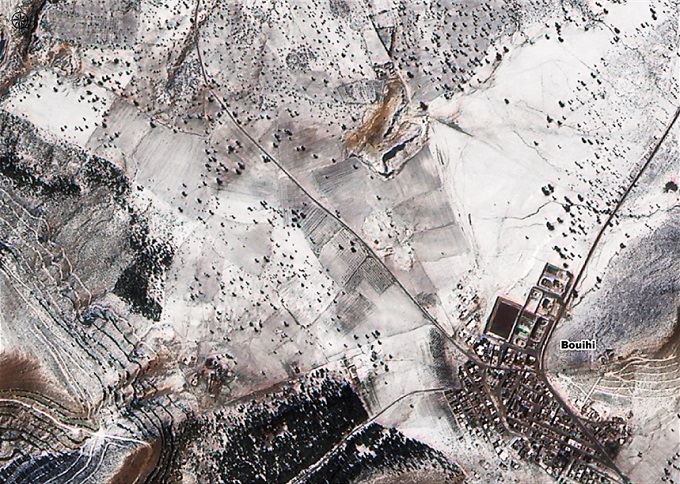 Zoom sur l’enneigement autour de Bouihi (W. Tlemcen), vu par Alsat-2B (07 février 2018)