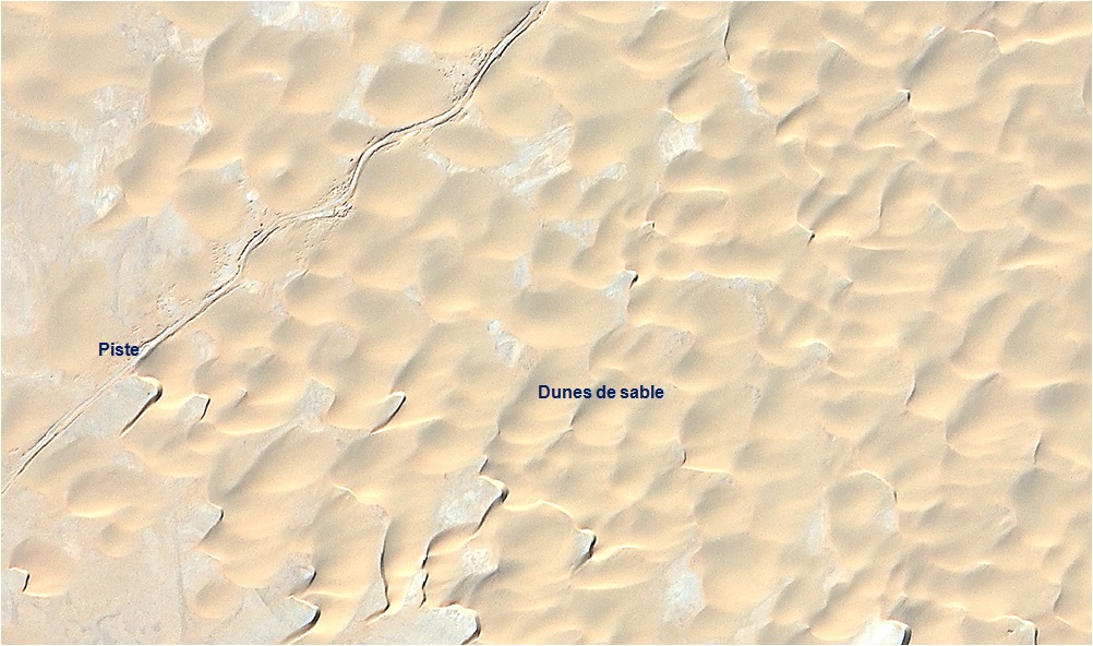 Fig.07 : Zoom sur les dunes de sable de la région d’Adrar. La wilaya d’Adrar est dominée par une zone désertique, caractérisée par des paysages dunaires assez marqués.