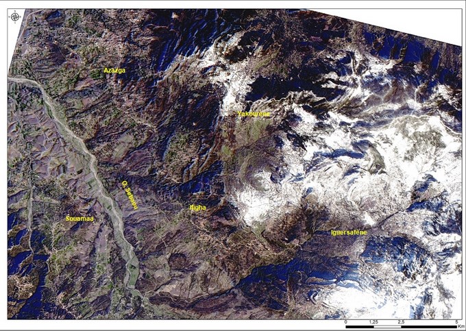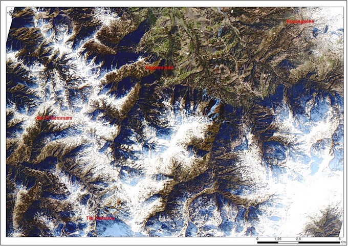 Zone 3 : Enneigement du Massif de Djurdjura (W. Tizi Ouzou), vu par Alsat-2A (Fausse couleur)