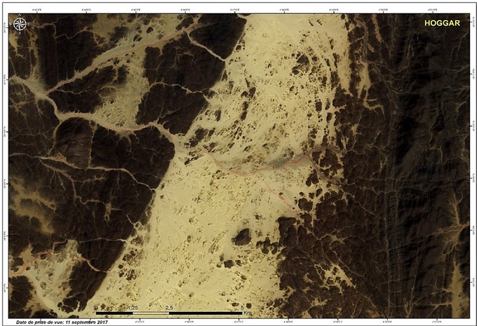 Région du Hoggar : la végétation éparse, présente au niveau des lits d’oued, caractérisée par une activité chlorophyllienne moyenne à importante ;