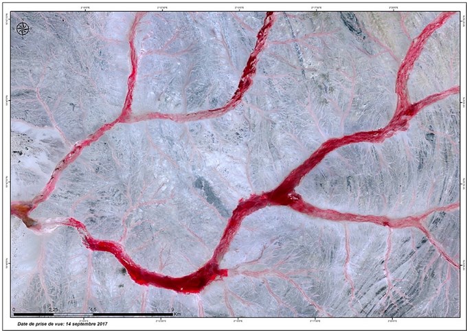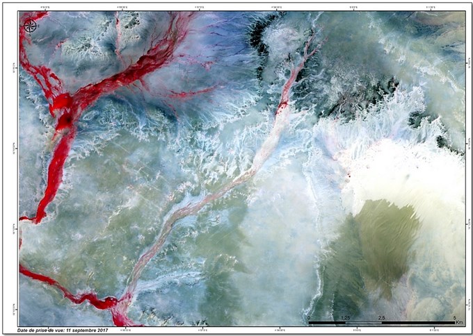 Région du Nord du Mali : caractérisée par un réseau hydrographique très dense, la végétation présente le long de ces oueds est dense avec une très forte activité chlorophyllienne.
