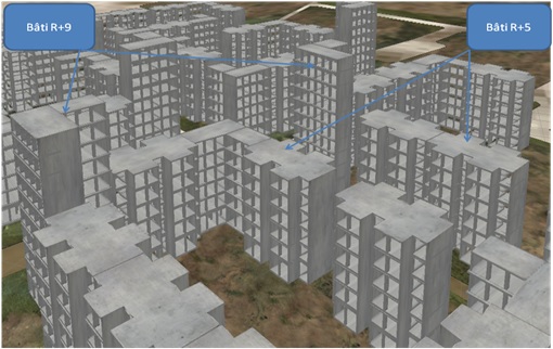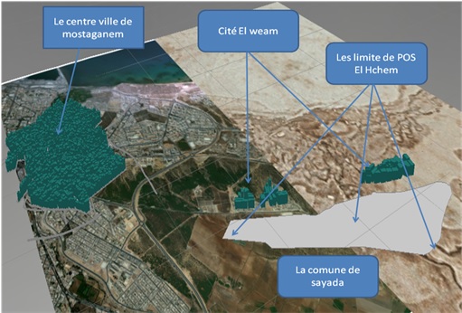 – Suivi des instruments d’urbanisme et les programmes de logements : inscrit au titre du programme de modernisation de la gestion et du suivi des instruments d’urbanisme du Ministère de l’Habitat et de l’Urbanisme, le Système d’Information Géographique (SIG) réalisé, repose sur l’implémentation d’une base de données urbaines, alimentée par l’imagerie satellitaire, les levés topographiques, les Plans d’occupation des Sols (POS) et les Plans Directeurs d’Aménagement et d’Urbanisme (PDAU). L’autre volet de l’étude concernait le suivi dynamique de l’évolution des chantiers de construction par l’intégration d’indicateurs de changement et d’évolution en se basant sur l’utilisation de l’imagerie satellitaire à haute résolution.