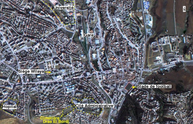 Zoom des images Alsat-2A (mode couleur naturelle à 2.5 m), autour de la partie Ouest de la ville de Bouira