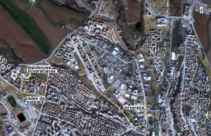 Les images Alsat-2A en mode couleur à 2.5 m, issues de la combinaison de l’image panchromatique à 2.5 m et des images multispectrales à 10 m, constituent un bon document cartographique de base (spatiocarte) pour les études urbaines à l’échelle du 1/10.000ème .