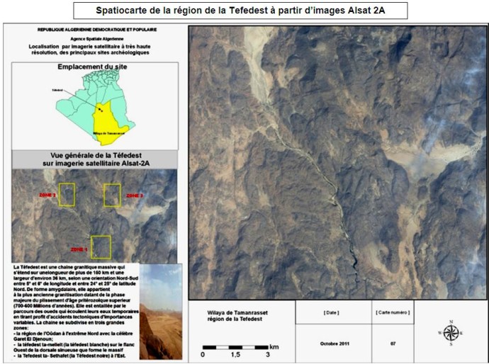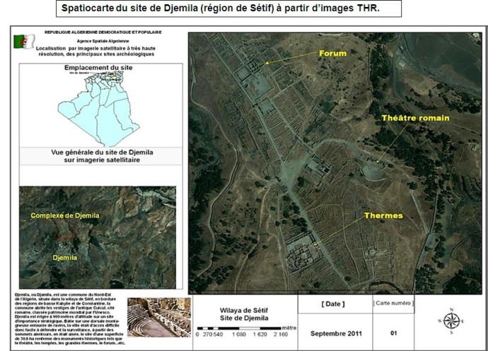 Mise en œuvre d’un Système d’Information Géographique pour la gestion, l’exploitation et la sécurisation des sites archéologiques. Une rencontre a réuni, le jeudi 13 septembre 2013 au siège de l’ASAL, les experts, de l’Agence Spatiale Algérienne, du Ministère de la Culture, et du Ministère de l’Energie et des Mines, pour examiner et définir les termes de référence du projet de mise en œuvre d’un Système d’Information Géographique (SIG) dédié à la gestion, l’exploitation et la sécurisation des sites archéologiques nationaux. Le Ministère de la Culture a attiré l’attention sur l’impact de certains phénomènes naturels tels que l’érosion, les incendies, les inondations, sur le patrimoine culturel, et la nécessité de mettre en œuvre un système efficace de prévention contre les éventuels préjudices. Dans sa forme actuelle, un système pilote développé par l’ASAL comporte : – L’identification et la caractérisation du patrimoine culturel ; – L’inventaire et la mise à jour du patrimoine culturel ; – La caractérisation de l’environnement des sites archéologiques. Aussi, la finalisation d’un outil SIG complet s’appuyant entre autres sur l’imagerie satellitaire nécessite l’implémentation de données multidimensionnelles que fournira le Ministère. La mise en œuvre de cet outil d’aide à la décision permettra d’atteindre l’un des objectifs du secteur, à savoir une gestion efficace du patrimoine culturel et sa sécurisation. Les premiers résultats enregistrés par l’ASAL ont mis en évidence les performances des images à haute résolution Alsat 2A pour l’étude de cette problématique.