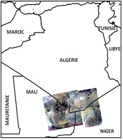 Dans le cadre de la campagne estivale de lutte contre le criquet pèlerin, visant la localisation des zones écologiquement favorables, susceptibles d’abriter la reproduction acridienne en cette période, l’Agence Spatiale Algérienne a analysé les images satellitaires à moyenne résolution , du mois d’août 2012, couvrant la région de l’extrême Sud Algérien, le Nord du Mali et le Nord du Niger et ce, sur une superficie de 681 508 km2 [figure 1]. |