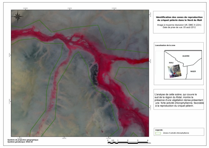 Figure 2: Identification des zones de reproduction du criquet pèlerin dans le Kidal (Mali). |