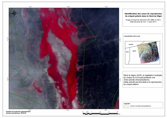 Figure 3 : Identification des zones de reproduction du criquet pèlerin dans la région d’Arlit (Niger). |