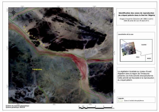 Figure 4 : Identification des zones de reproduction du criquet pèlerin dans la région de Timiaouine (Algérie). |