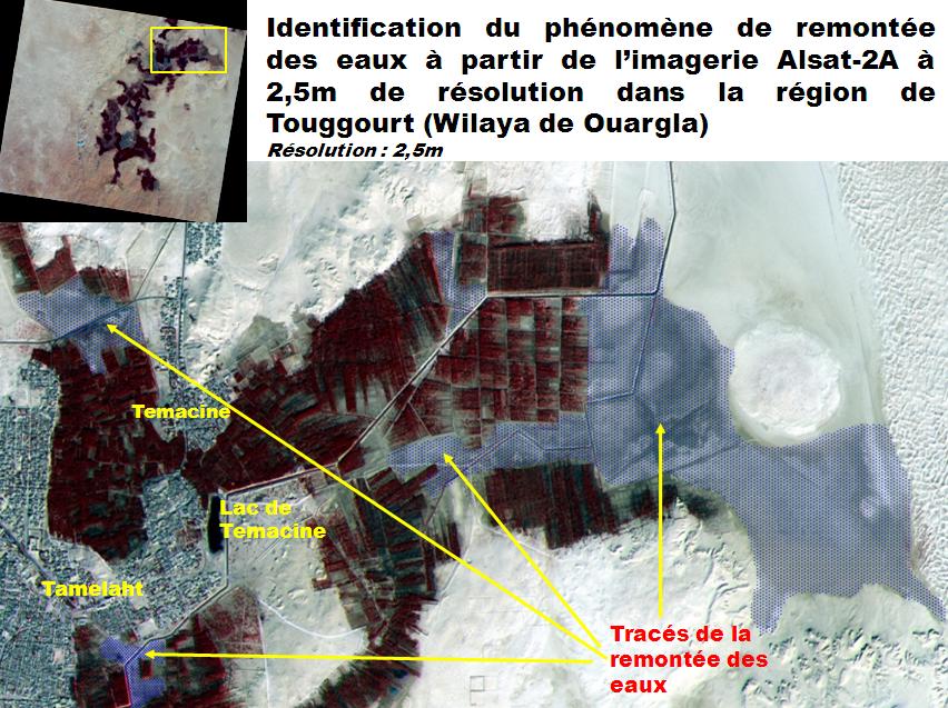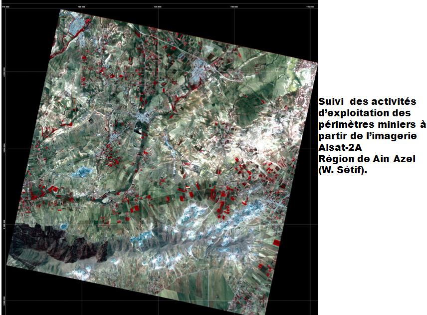 L’organisation d’un atelier national intitulé «Alsat-2A Utilisateurs », les 25 et 26 avril 2011, qui a permis d’exposer l’éventail des applications au bénéfice des secteurs nationaux dans le cadre de leurs programmes respectifs de développement.