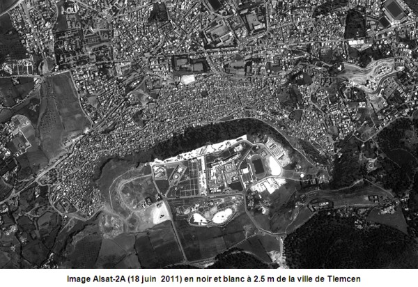 Image Alsat-2A (18 juin 2011) en noir et blanc à 2.5 m: Zoom autour du complexe des loisirs de lala SETTI (Ville de Tlemcen)