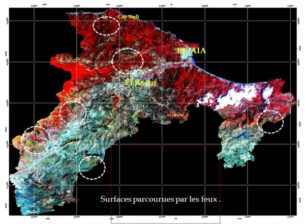 Dans le cadre de la collaboration entre l’Agence Spatiale Algérienne (ASAL) et la Direction Générale des Forêts (DGF), un atelier sur la présentation du bilan des feux de forêts 2010 a eu lieu le 22 février 2011 au siège de l’ASAL avec la participation de différents organismes nationaux, notamment la Direction Générale de la Protection Civile, l’Office National de la Météo, l’Institut National des Sols, d’Irrigation et de Drainage (INSID), l’Institut National de Recherche Forestière (INRF), et des experts universitaires.