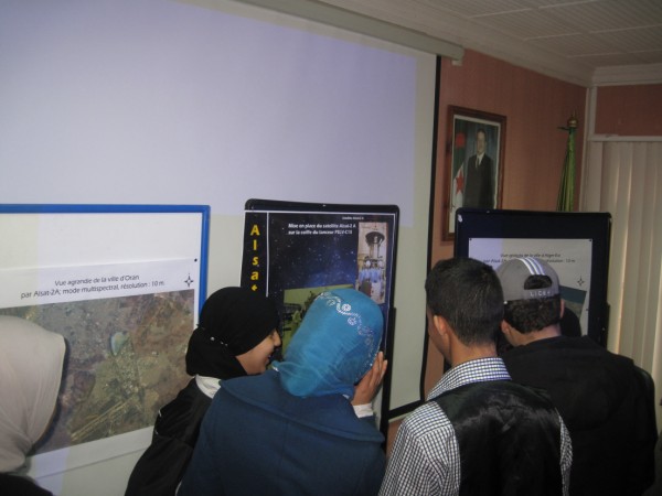 Le programme pédagogique dispensé à leur intention a consisté en la présentation du film sur Alsat-1, des minis conférences sur les grandes lignes de la télédétection, une vidéo du lancement du satellite Alsat-2 A ainsi qu’une exposition des images satellitaires animée par les experts de l’ASAL.