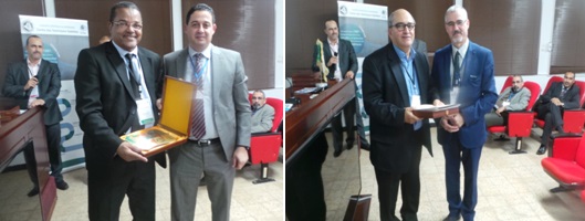 Remise du trophée de la JST à M. Abdellatif A, DG de l’aménagement de territoire et de l’Action régionale / Ministère de l’Habitat, de l’Urbanisme et de l’Aménagement de Territoire – Mauritanie (photo de gauche) et au Professeur M. Meghraoui (photo de droite).